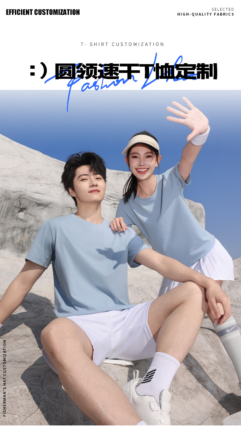 06-5619# Quick Dry Round Neck Plain T-Shirt Men's And Women's Work Clothes Short Sleeve Workclothes Pure Cotton Group Construction Advertising Advertising Shirt Customized Team Clothing Printing Logo